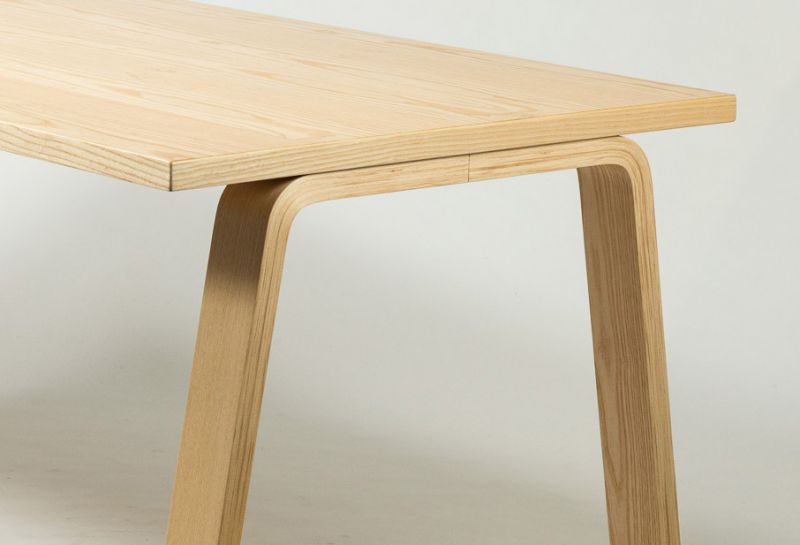 The base is made using a single length of solid timber, cut into three equal lengths. A complex tectonic transformation within the joints allows the three identical elements to pack flat and assemble without additional fixings.